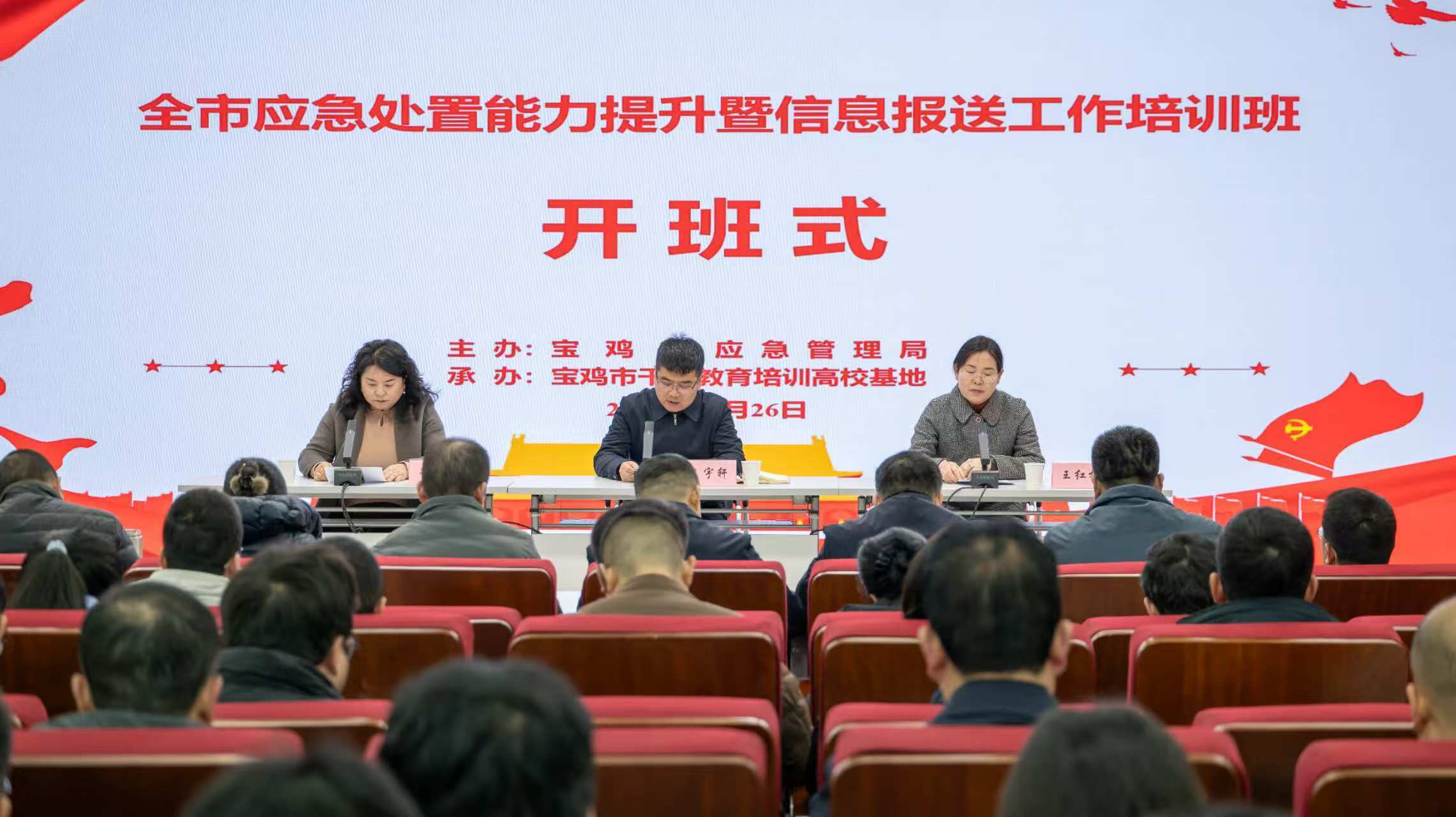 为切实补齐应急处置能力短板,强化队伍专业素养,12月26日,宝鸡市应急处置能力建设培训班在宝鸡文理学院举办。市干部教育培训高校基地主任王红梅致辞,市应急管理局局党委委员、副局长王宇轩参加开班仪式并讲话。