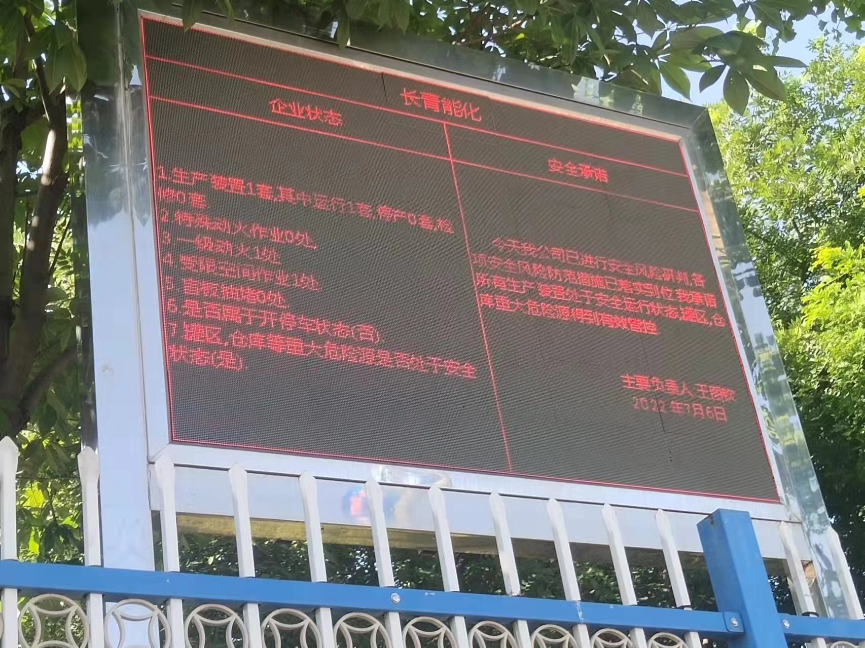 7月6日陕西长青能源化工有限责任公司安全风险承诺公告
