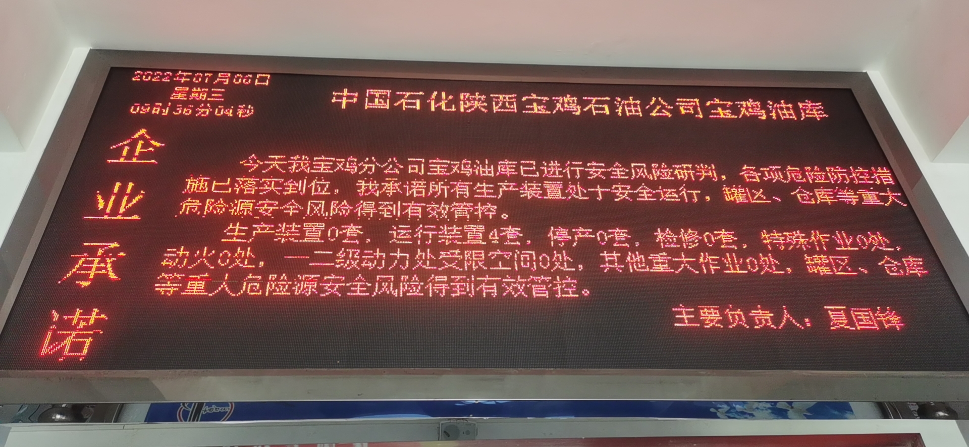 7月6日中国石化陕西宝鸡石油分公司安全风险承诺公告