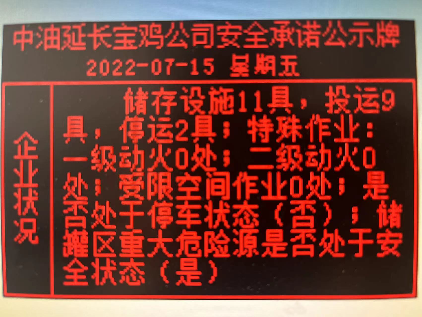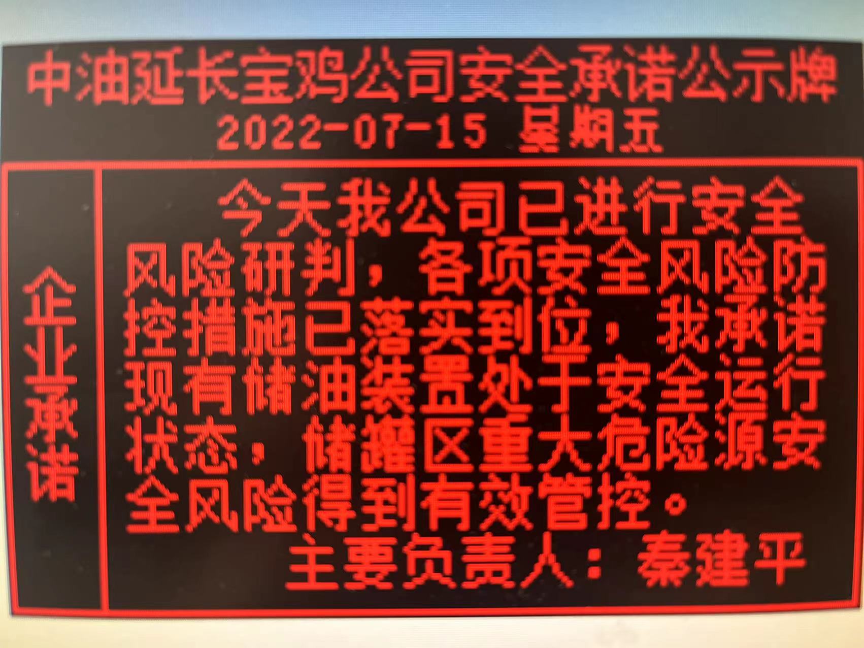 7月15日中油延长石油销售宝鸡有限公司安全风险承诺公告