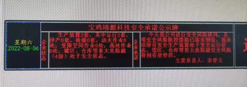 8月6日宝鸡靖源科技有限公司安全风险承诺公告