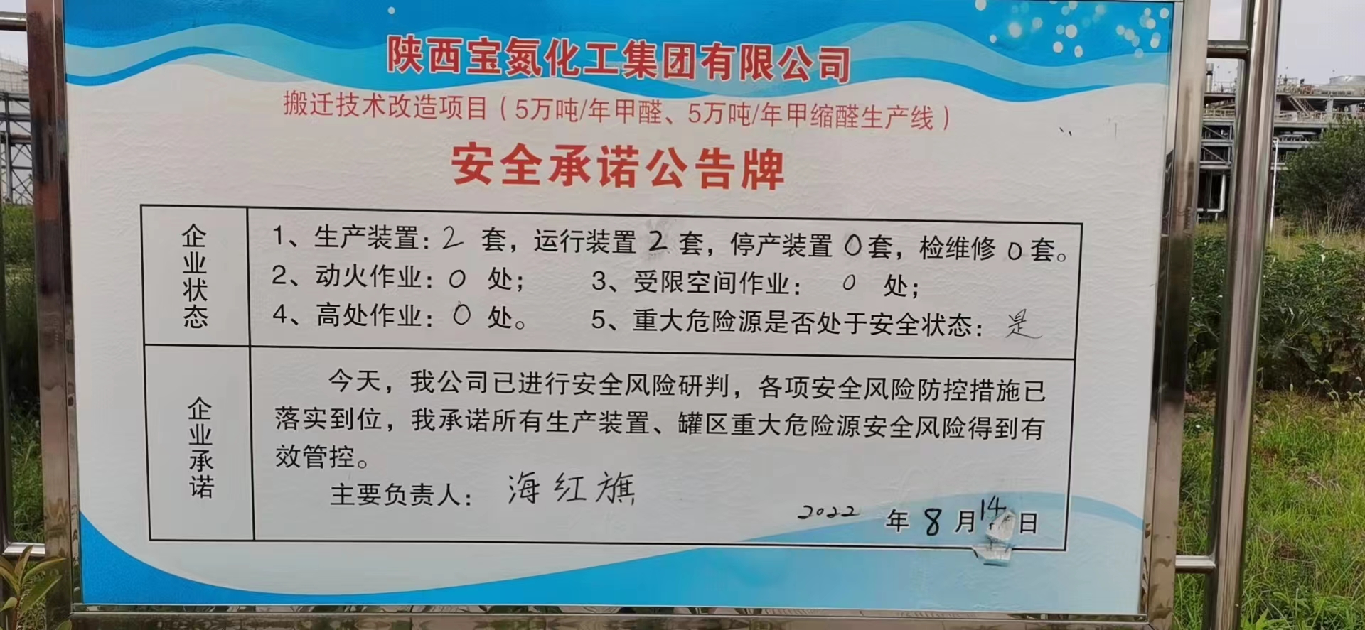 8月14日陕西宝氮化工集团有限公司安全风险承诺公告