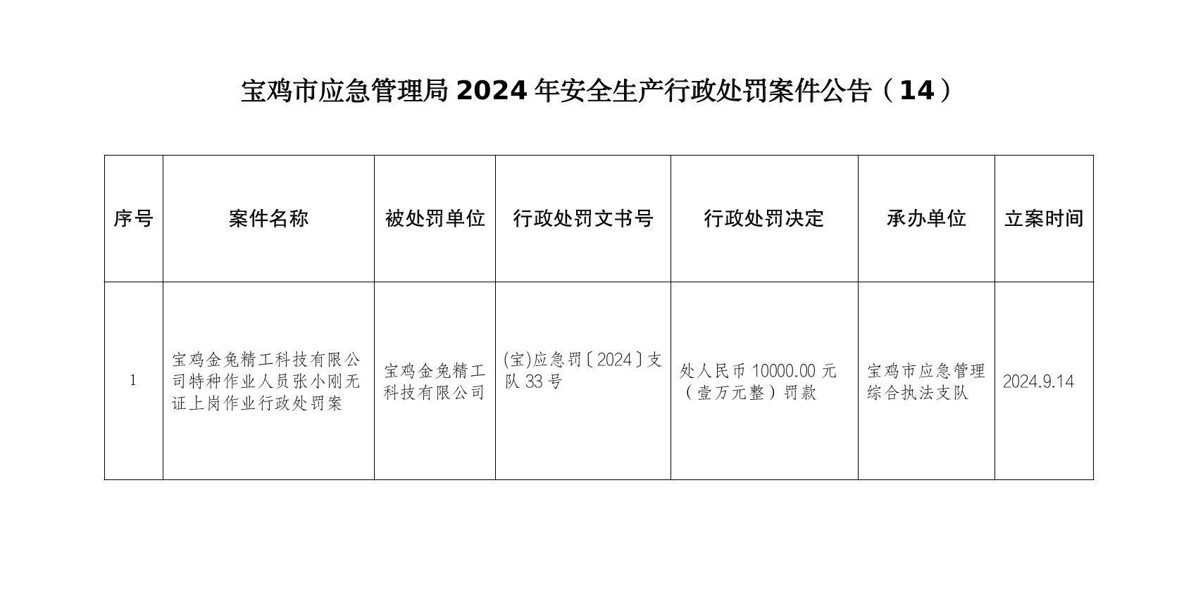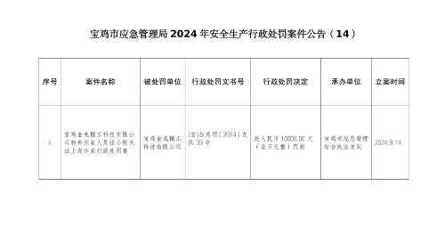 宝鸡市应急管理局2024年安全生产行政处罚案件公告(14)