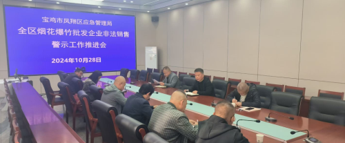 10月28日,凤翔区应急管理局组织召开了烟花爆竹批发企业非法销售烟花爆竹警示教育工作推进会,传达了全区大气污染治理专项行动第九次推进会会议精神,学习了部分非法销售烟花爆竹案例,详细安排了严打非法销售烟花爆竹违法行为等相关工作,局烟花爆竹组全体同志、全区6户烟花爆竹经营批发企业负责人参加会议。