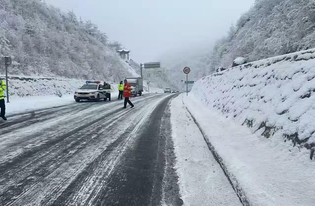 2025年2月19日潘太公路迎来了春节后第一场雨雪天气。高新交警大队以雪为令迅速启动应急预案。中队民警在积雪路段引导车辆有序通过弯道和上下坡,积极救援被困车辆,迅速联系路政部门在积雪结冰路段进行铲冰融雪,确保道路不被冰雪封锁。