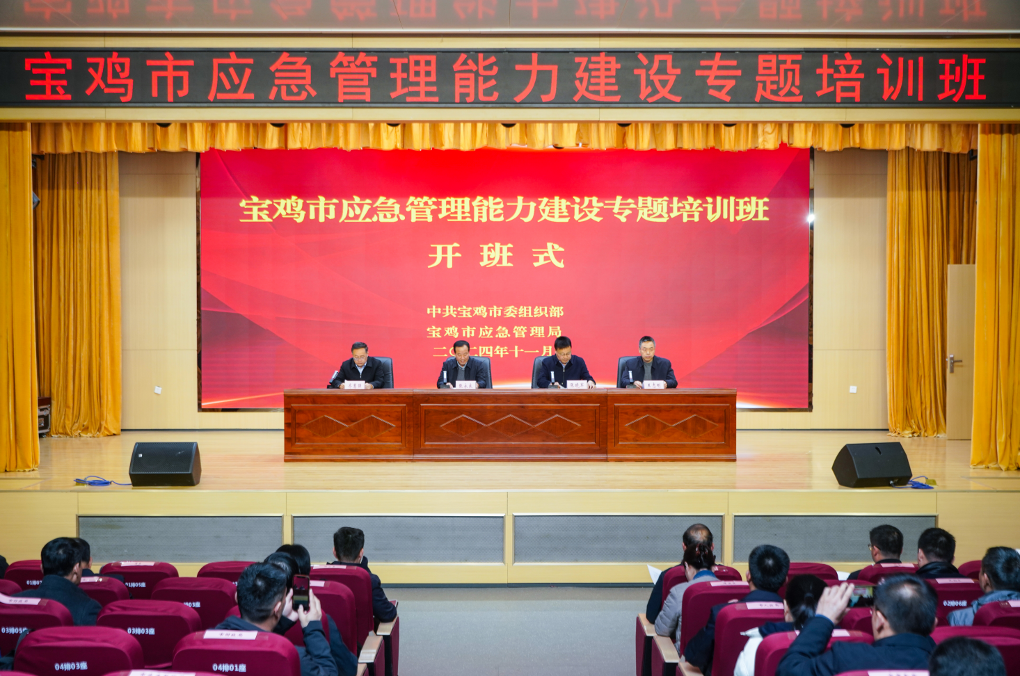 为深入学习贯彻党的二十届三中全会精神,贯彻落实习近平总书记历次来陕考察重要讲话重要指示和关于应急管理重要论述,全面提升全市各级领导干部应急管理能力,加快推进应急管理体系和能力现代化,11月27日—29日,宝鸡市委组织部、宝鸡市应急管理局联合组织举办了为期三天的“全市应急管理能力建设专题培训班”,对各县区主要领导、分管应急管理和安全生产工作负责同志,市安全生产和防灾减灾救灾委员会成员单位分管负责同志约100余人进行线上线下专题集中培训。培训班由市委组织部部务委员、二级调研员齐惠强主持,宝鸡市职业技术学院院长张永良出席开班式并致辞,市安全生产委员会办公室主任、市应急管理局局长张晓军同志作动员讲话。